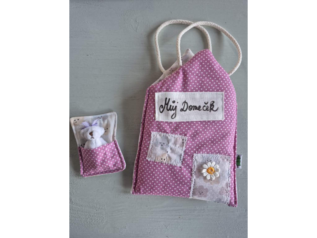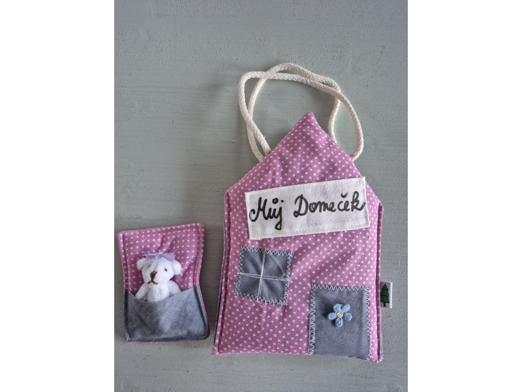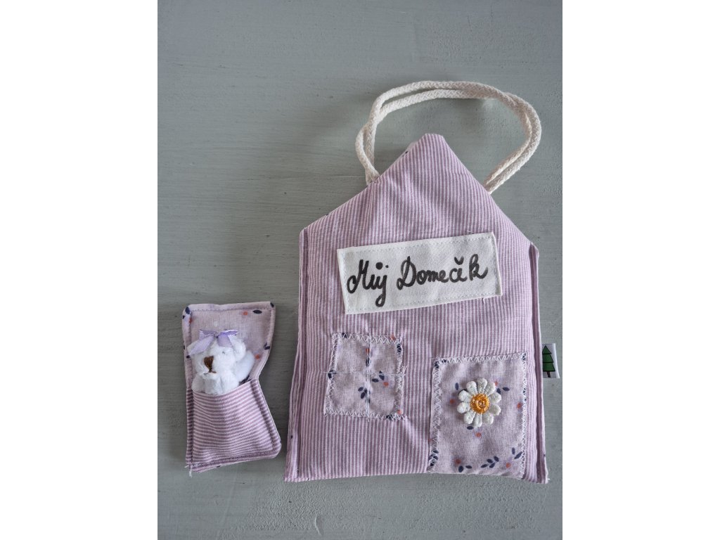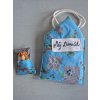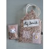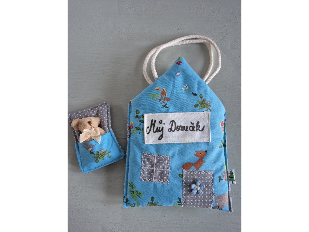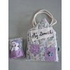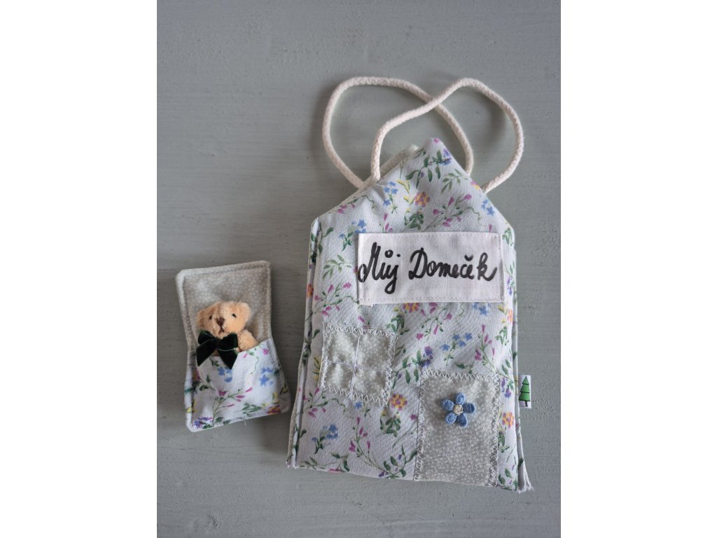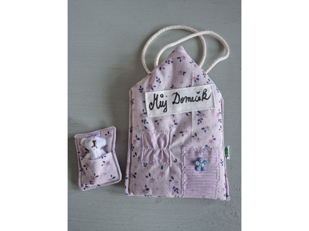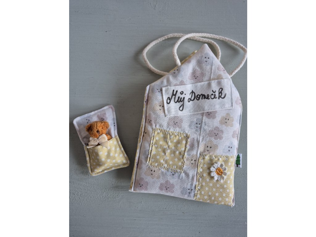 Taška na cesty s malým plyšovým medvídkem ve spacáčku.