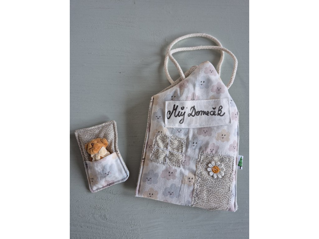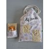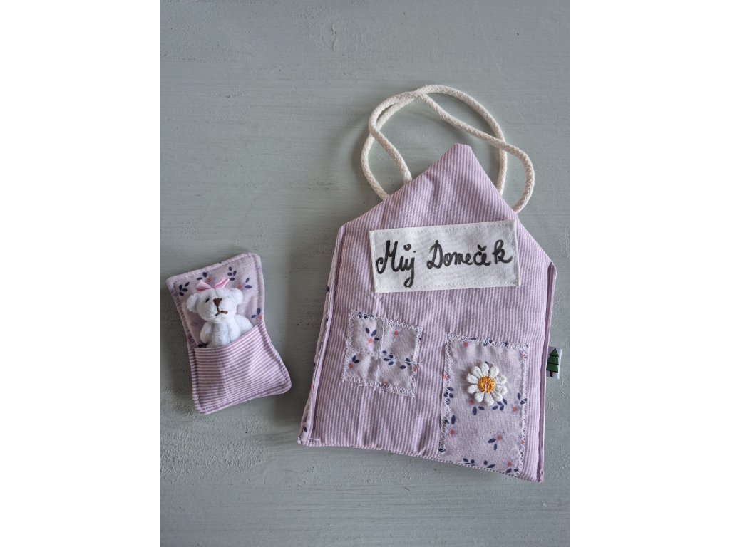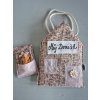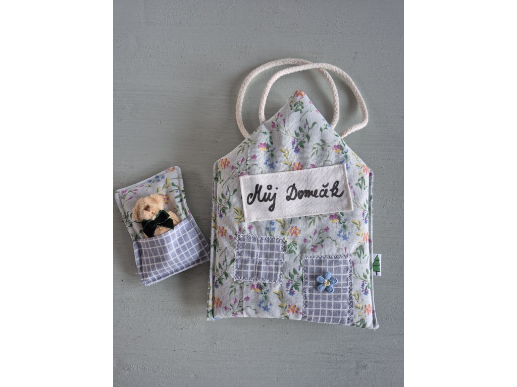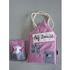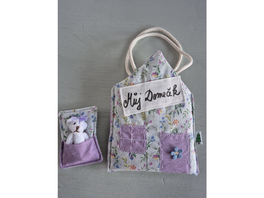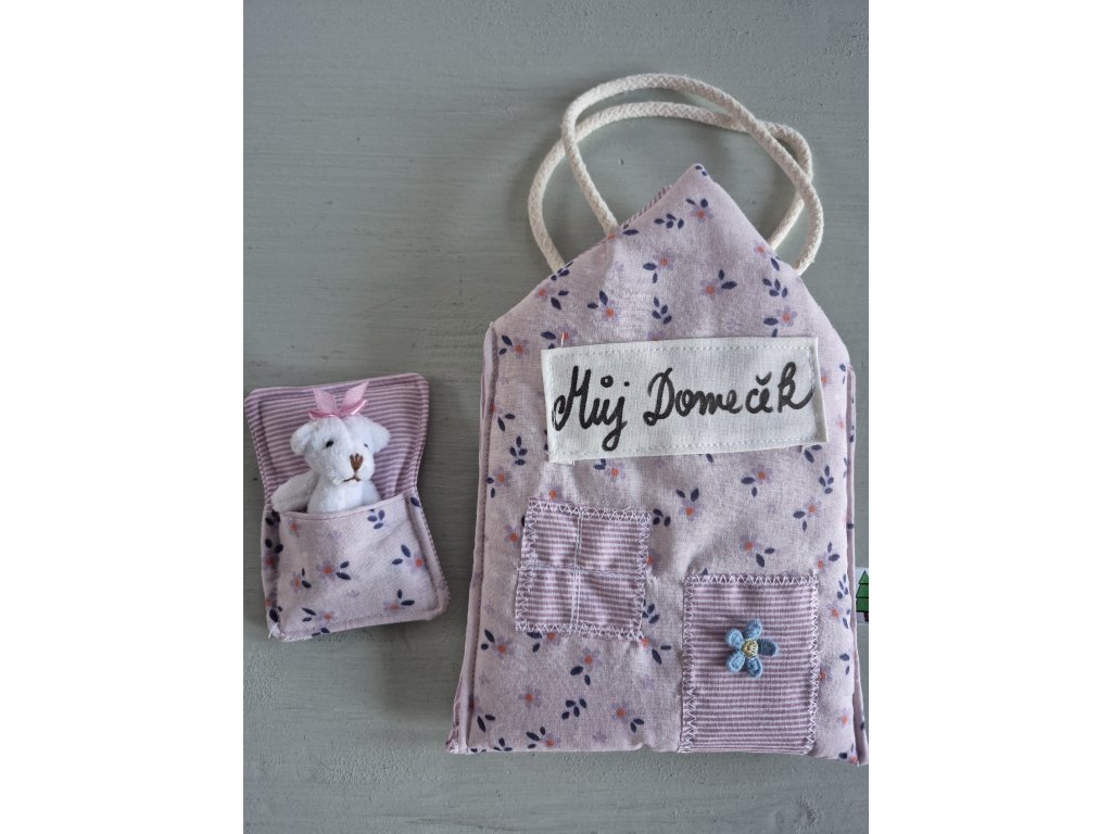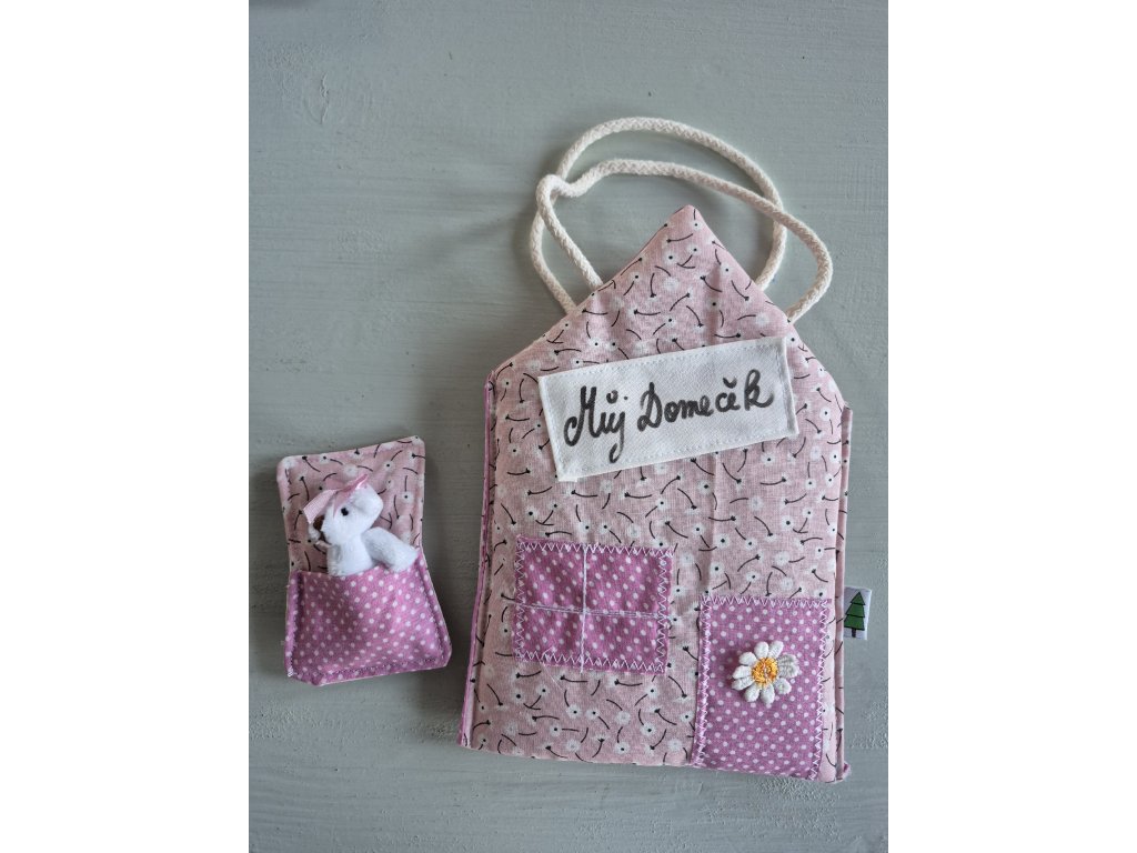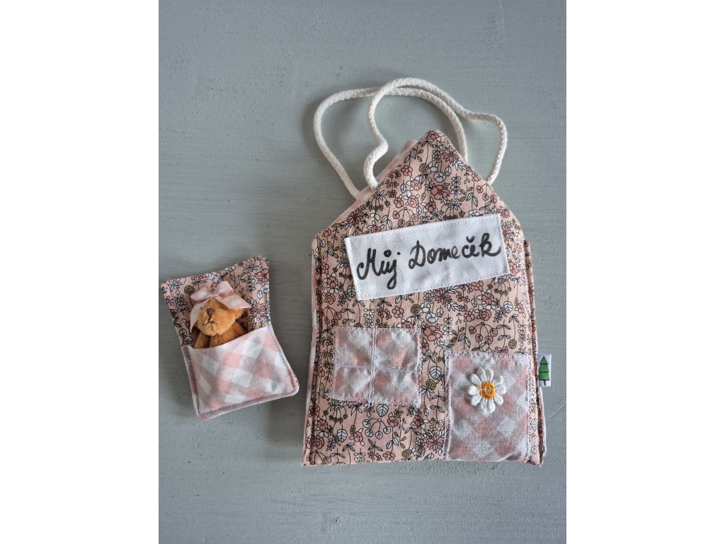 Taška na cesty s malým plyšovým medvídkem ve spacáčku.