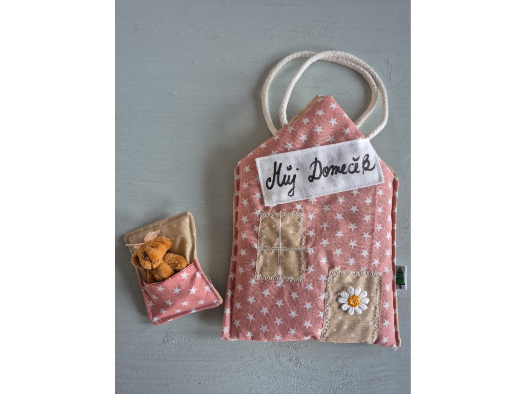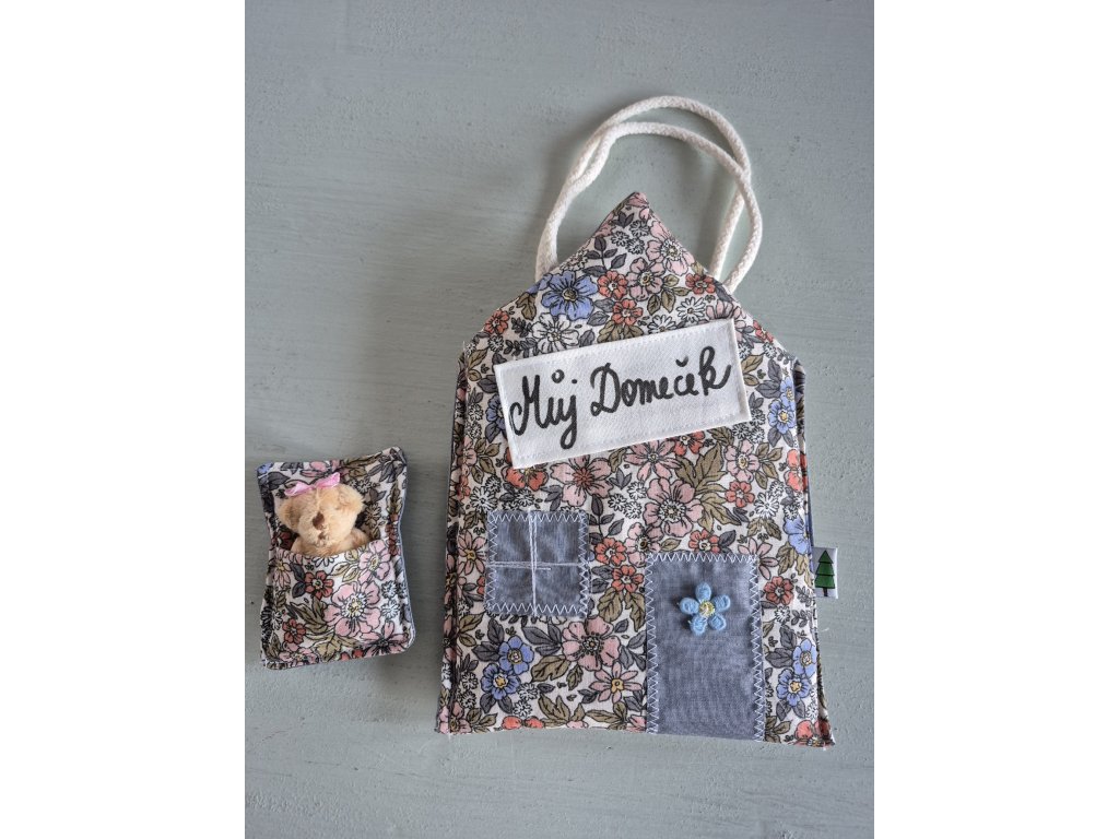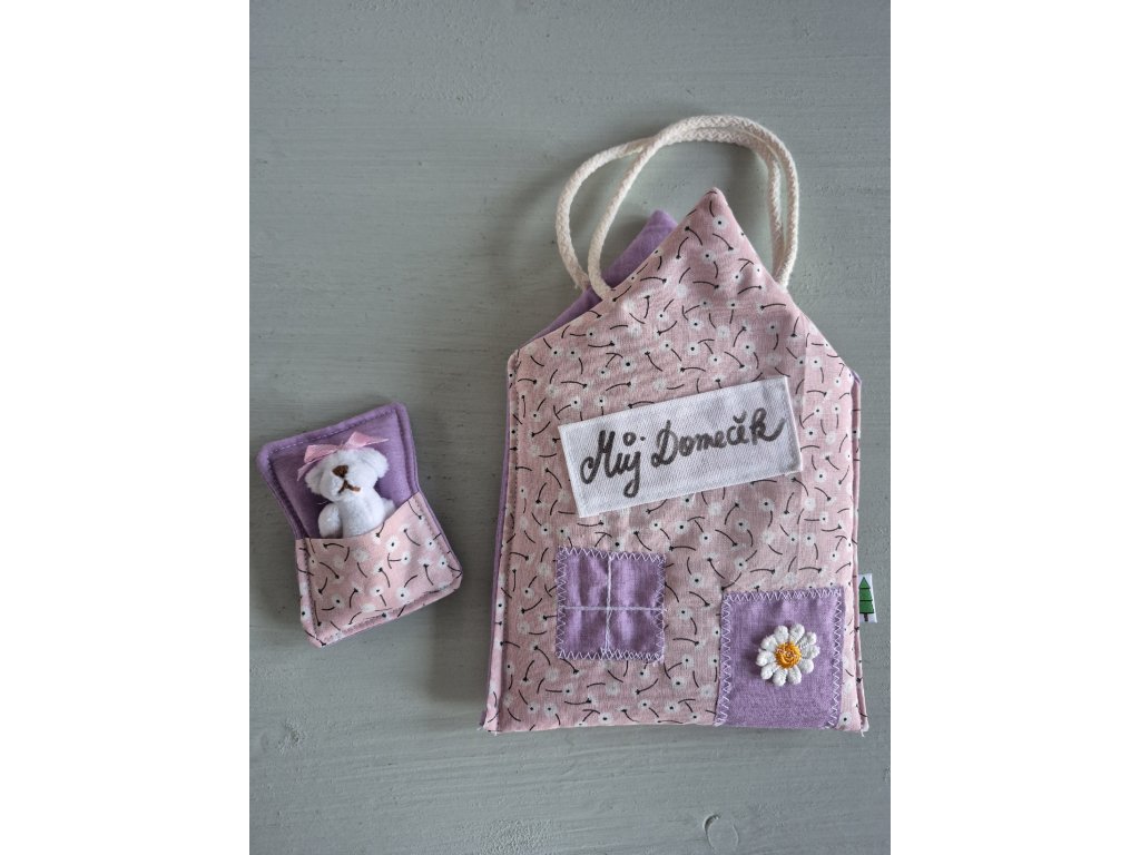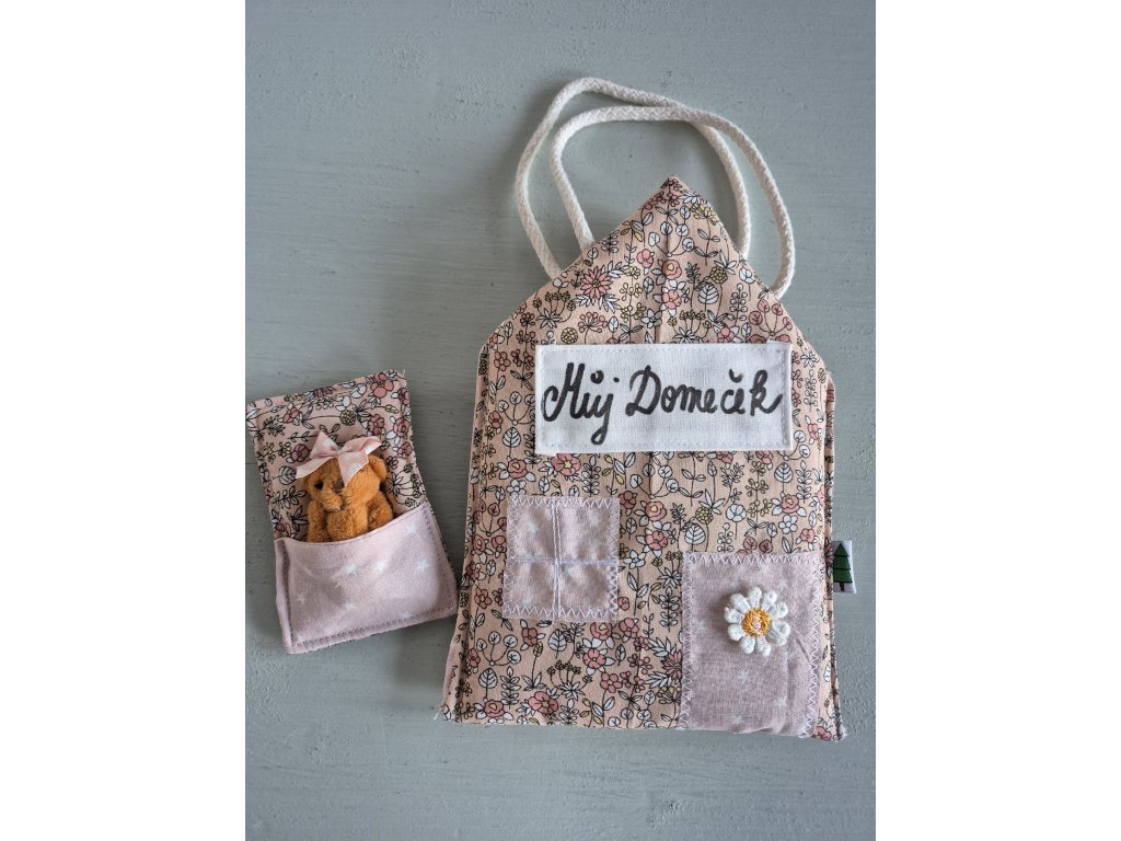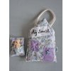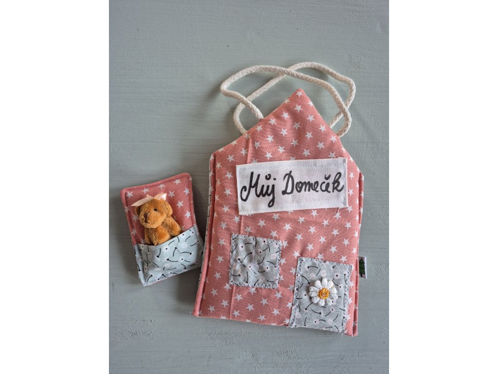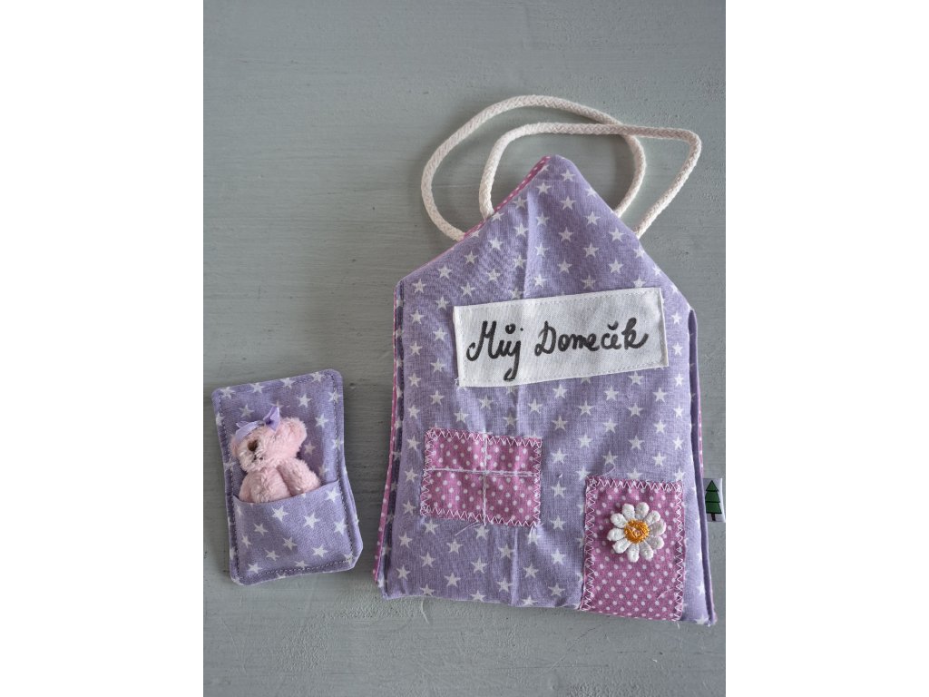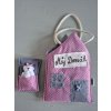 Taška na cesty s malým plyšovým medvídkem ve spacáčku.