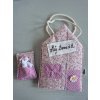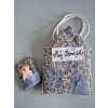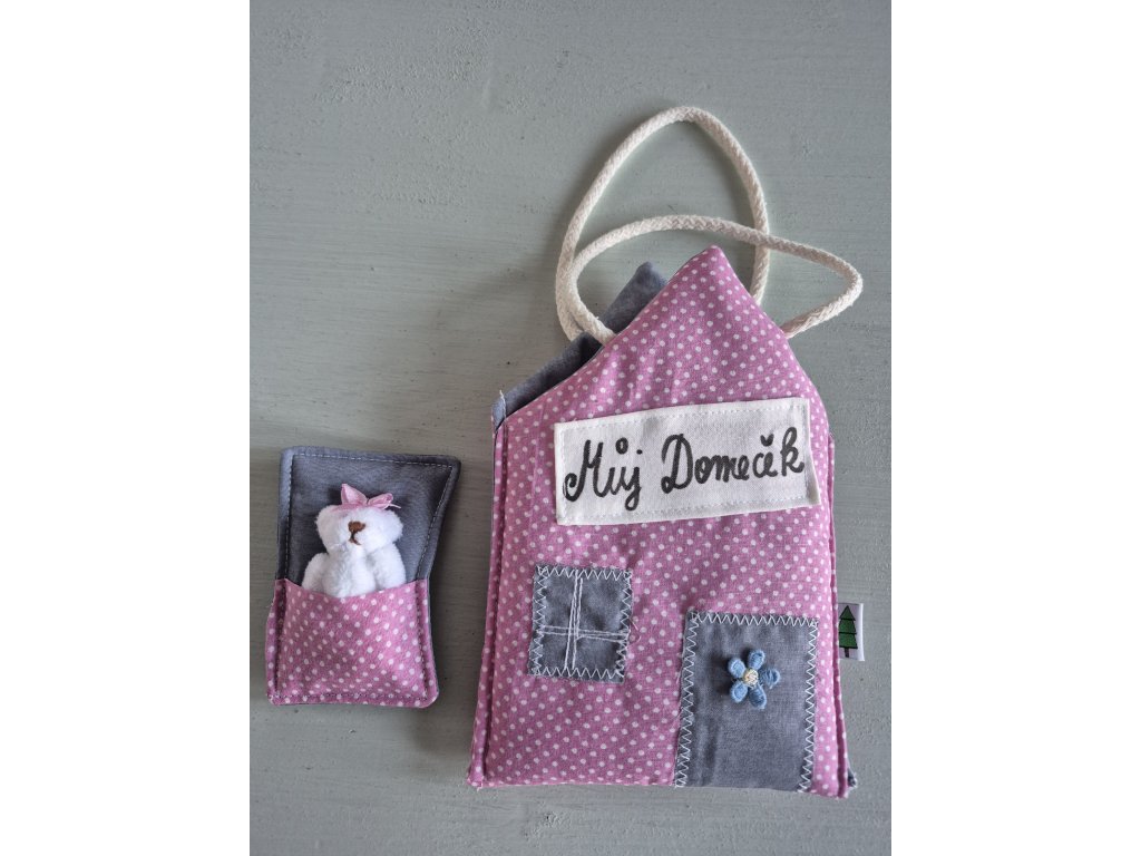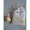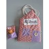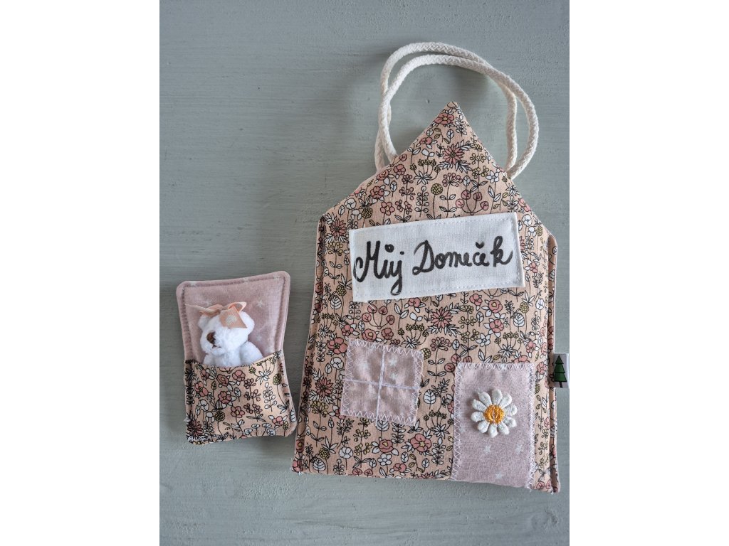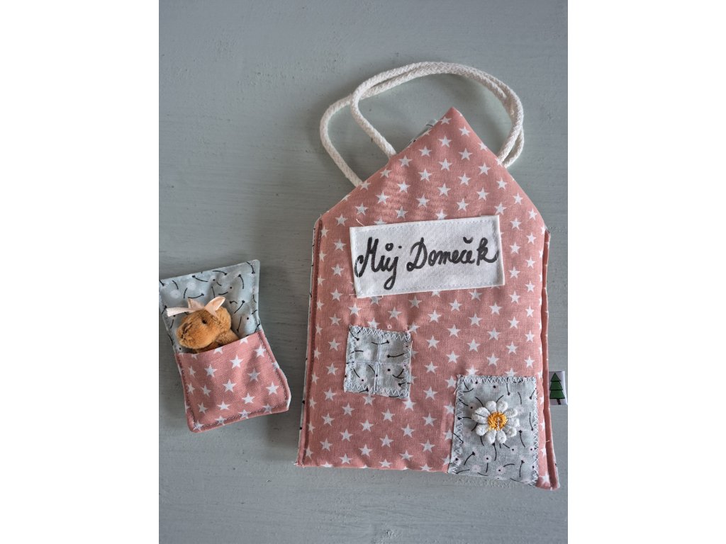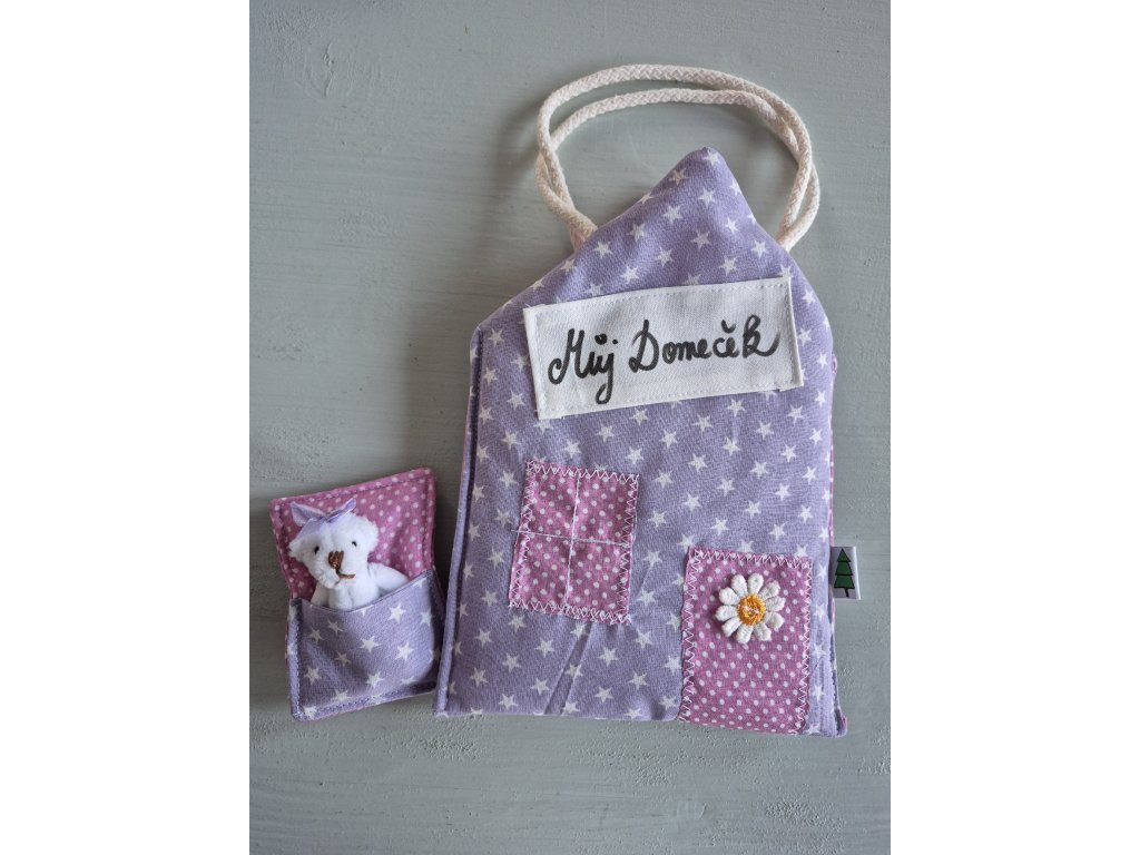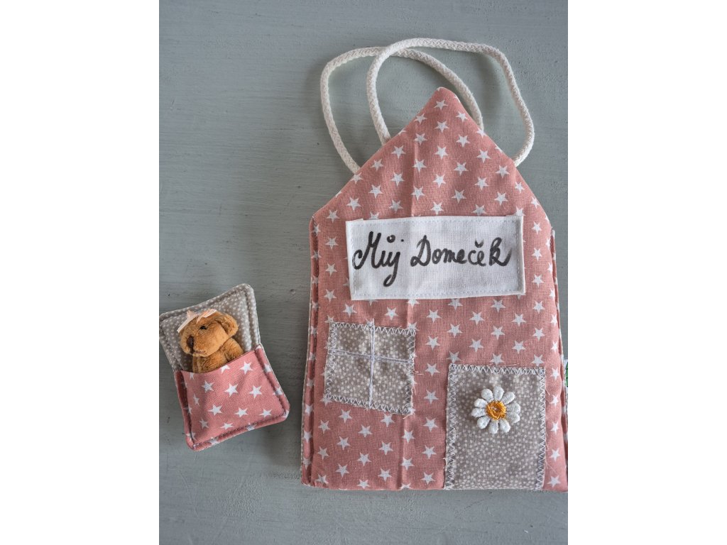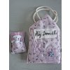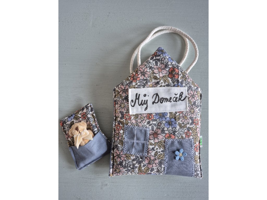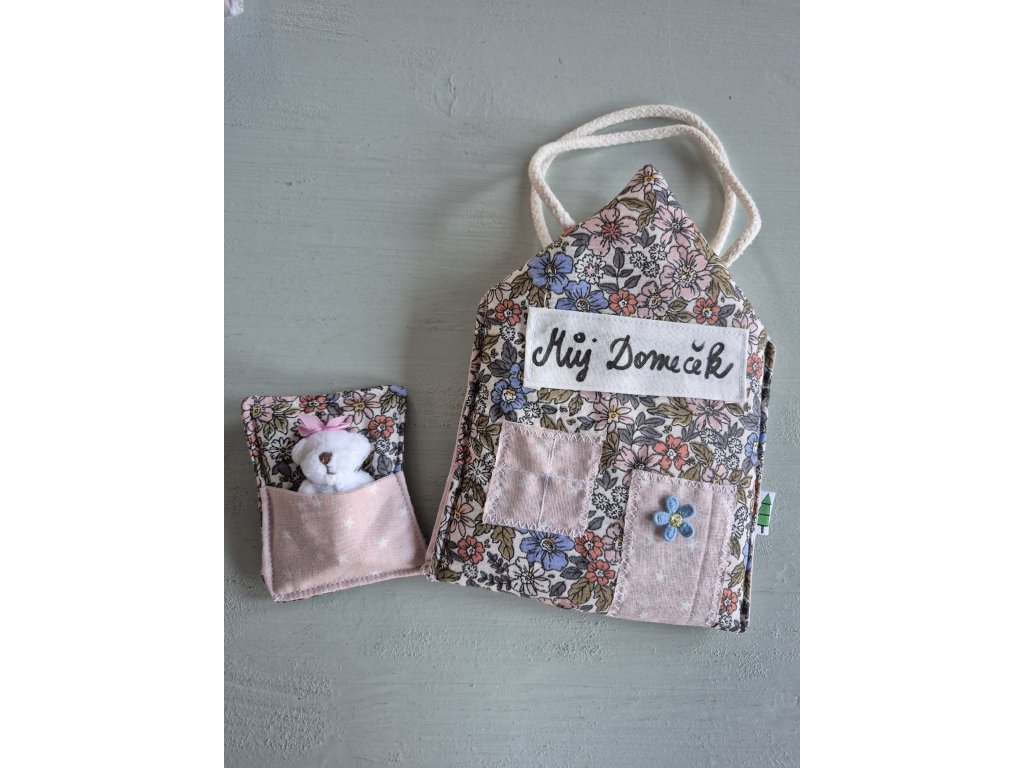 Taška na cesty s malým plyšovým medvídkem ve spacáčku.