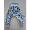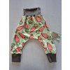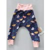 Autorský střih rostoucích tepláčků. Větší než konfekce, proto volte o velikost menší než právě nosíte. Bavlněná teplákovina k nošení celoročně. Žebrovaný úplet je vhodnější do letních dnů navečer ,když se lehce ochladí nebo jako celoroční pyžámko.