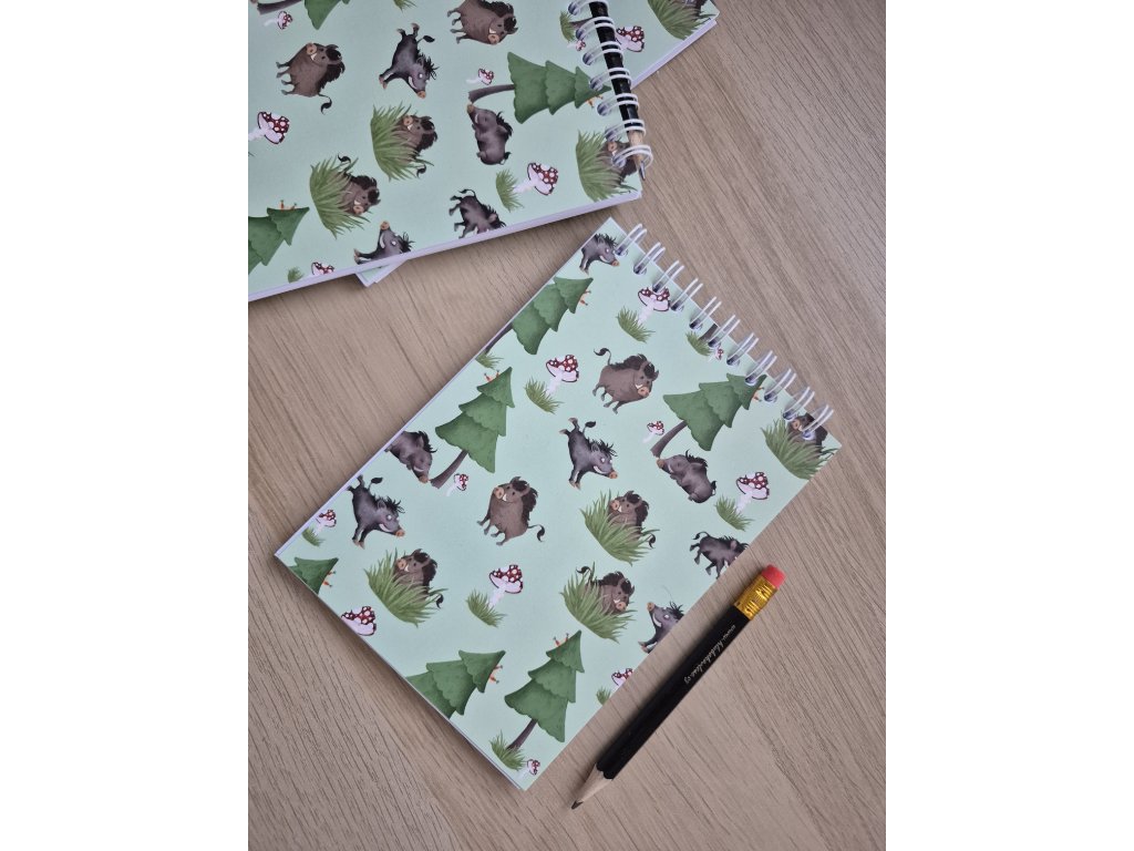 spirálový blok se vzorem Hlubokovlese (rozměr 15 x 11 cm )